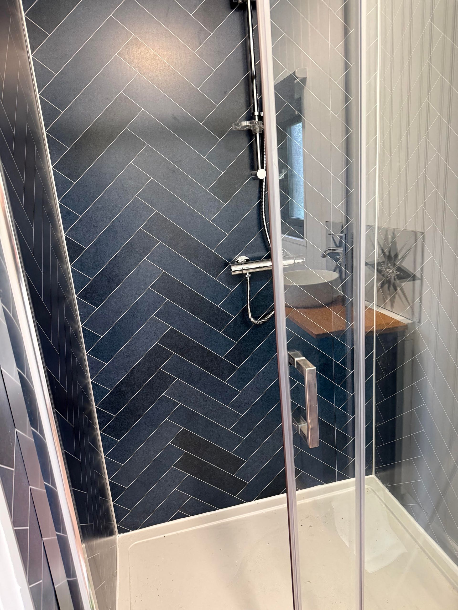 Toilet, Shower, basin, heated towel rail